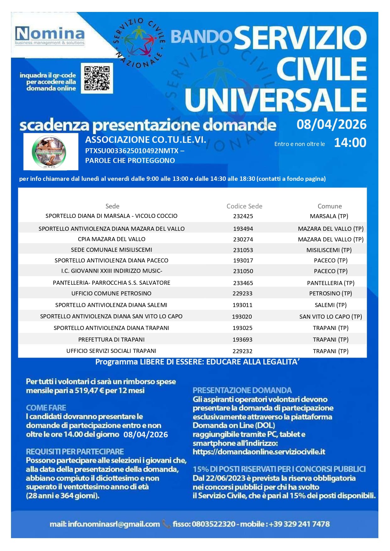 La sede sarà operativa dallo 01 Ottobre 2026.