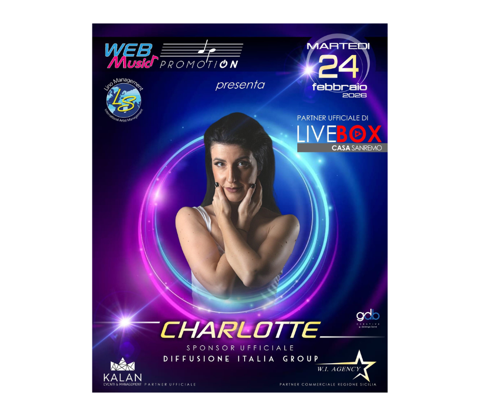 Charlotte, all’ anagrafe Sabina Esposito, cantautrice siciliana originaria di Pantelleria, parteciperà martedì 24 Febbraio 2026 al Live Box di Casa Sanremo, nello spazio Web Music Promotion gestito della Lino Management Berlin e Kalan Eventi Group, presentando il suo ultimo singolo “Come le foglie e il vento“