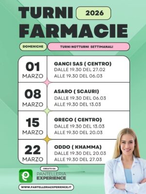 Pantelleria Experience ha condiviso il calendario delle farmacie di turno, per l’anno 2026.