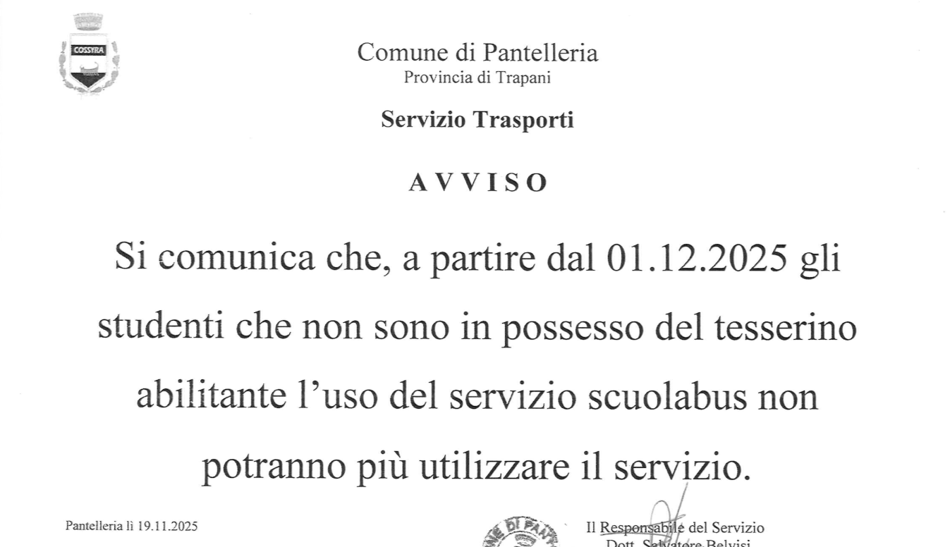 Pantelleria – Attenzione per rinnovo tesserino scuolabus