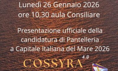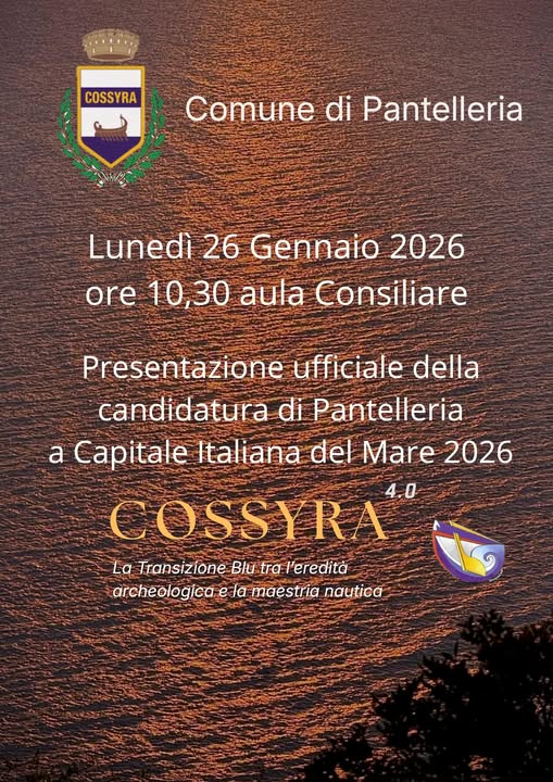 Lunedì 26 gennaio 2026, alle ore 10.30, presso l’Aula Consiliare, si terrà la presentazione ufficiale della candidatura di Pantelleria a Capitale Italiana del Mare 2026.