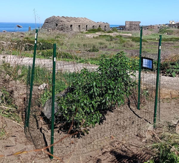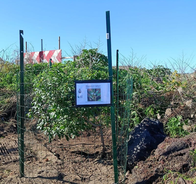 protezione intorno al Myoporum laetum, al quale auguriamo lunga vita.