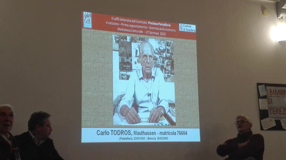 Per non dimenticare la Repubblica Italiana riconosce il giorno 27 gennaio, data dell’abbattimento dei cancelli di Auschwitz, “Giorno della Memoria”, al fine di ricordare la Shoah (sterminio del popolo ebraico), le leggi razziali, la persecuzione italiana dei cittadini ebrei, gli italiani che hanno subìto la deportazione, la prigionia, la morte, nonché coloro che, anche in campi e schieramenti diversi, si sono opposti al progetto di sterminio, ed a rischio della propria vita hanno salvato altre vite e protetto i perseguitati. Ieri a Pantelleria in Sala Mediateca, con il patrocinio del Comune di Pantelleria, è stato organizzato dal Caffè letterario del Comitato Preziosa Pantelleria, con gli interventi dei ragazzi dell’Istituto “V. Almanza” e dai soci del Gruppo Anziani di Pantelleria, in un giusto connubio tra memoria e futuro, si è ripercorsa una pagina buia della storia. A rappresentare l’amministrazione comunale, durante il toccante incontro: il Vicesindaco Maurizio Cando, il Presidente del Consiglio Erik Vallini e l’assessore Giuseppe Mazzonello. E’ stata inoltre scoperta una apposita lapide in marmo riportante la dicitura: Contro ogni forma di razzismo e discriminazione in memoria dei cittadini di Pantelleria: TODROS ALBERTO, TODROS CARLO, SPANO’ DONATO deportati nei campi di concentramento nazi-fascisti. Si ringraziano tutti gli intervenuti.