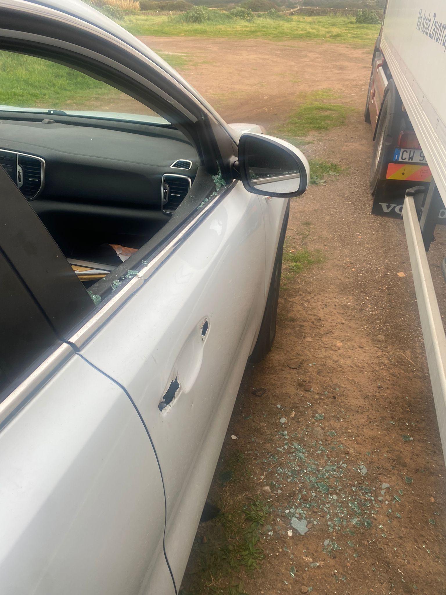 Il malfattore avrebbe usato una vecchia pompa idraulica e si è scagliato contro il mezzo distruggendo il finestrino.
