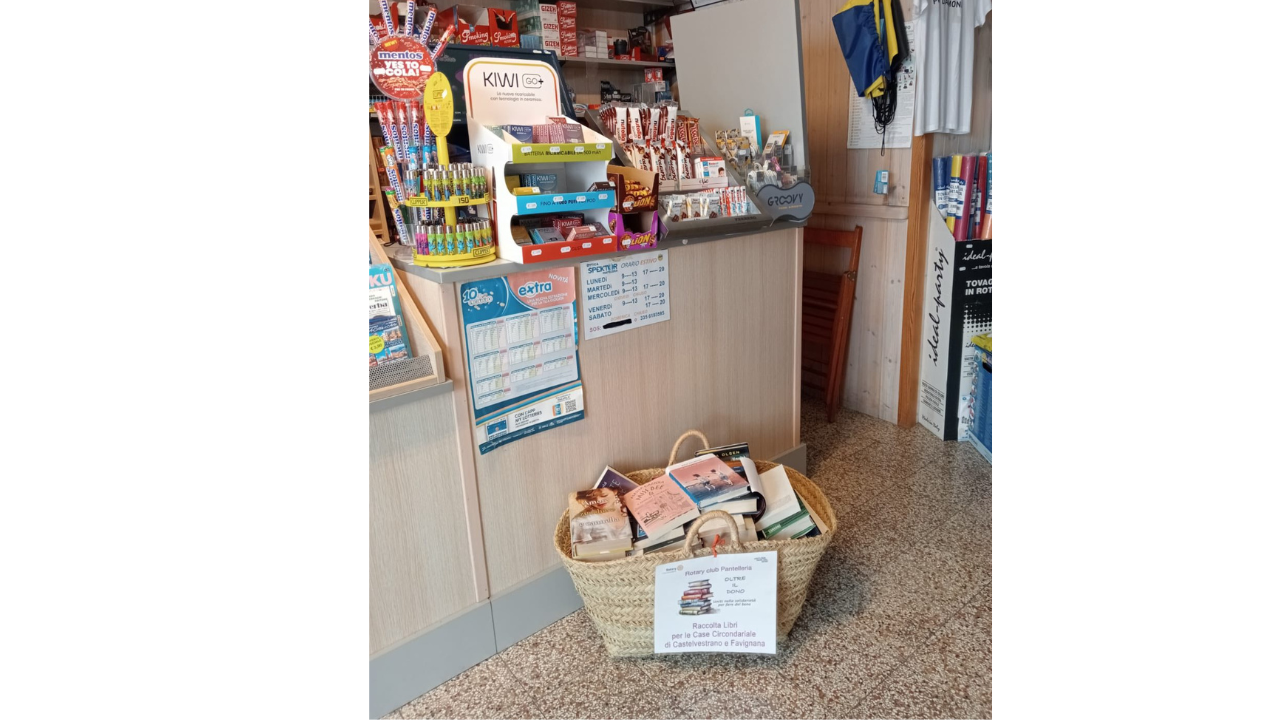 Continua con successo l’iniziativa lanciata dal Rotary Club Pantelleria dal titolo “Oltre il dono. Uniti nella solidarietà per fare del bene”, una raccolta di libri di narrativa (usati o nuovi) da donare alla Casa Circondariale di Castelvetrano e di Favignana per fornire le rispettive biblioteche. Un piccolo supporto nei momenti difficili di chi riceverà il dono, per creare occasione di respiro, riflessione e per esplorare nuovi mondi.