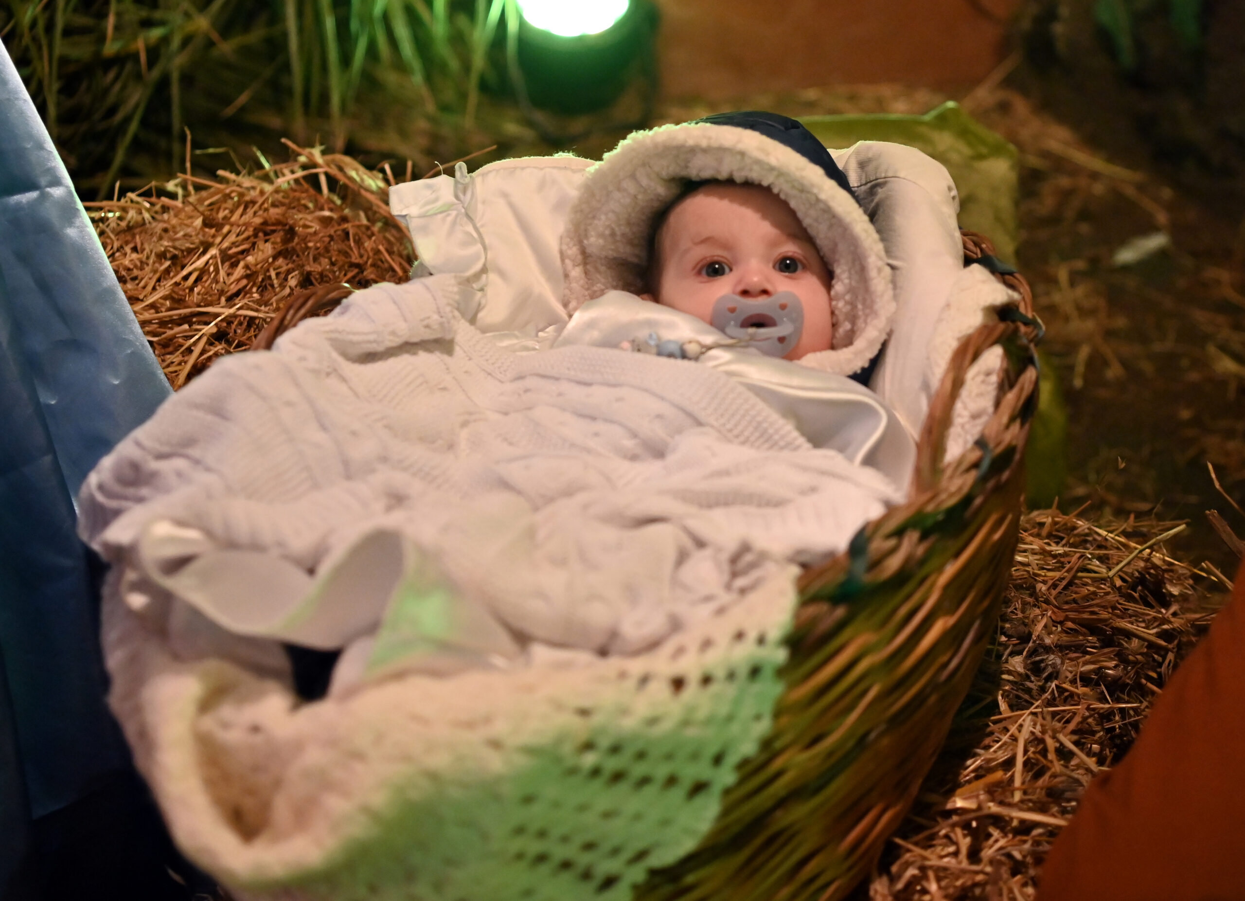 E in un andirivieni amicale e festoso, di gente che si conosce da sempre e riunita in un contesto simile, si intravede la capanna della natività, con tanto di bambinello vero e proprio, di nome Francesco.