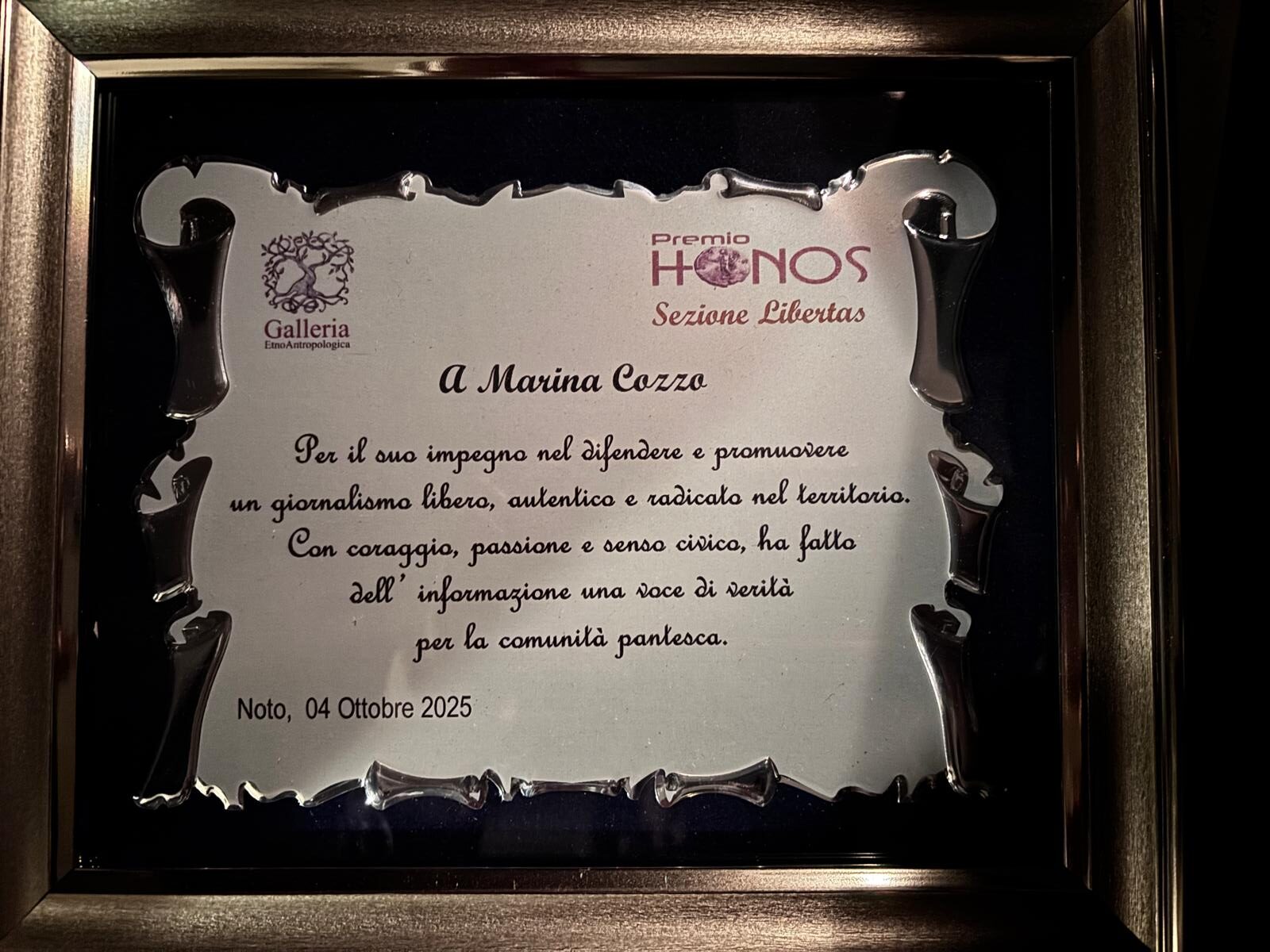 Il Giornale di Pantelleria – Al Direttore Marina Cozzo il Premio Honos per professionalità e promozione dell’isola