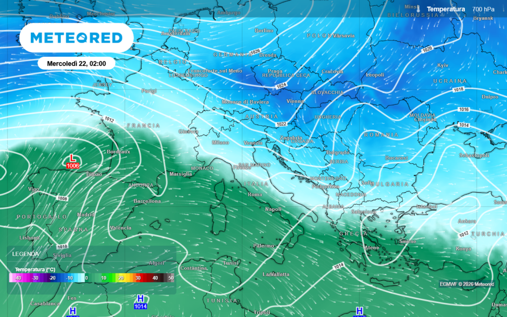 “Il blocco anticiclonico sul Nord Europa continua a convogliare aria più fredda verso il Mediterraneo. Anche il modello americano GFS, dopo alcune oscillazioni, ha allineato la propria proiezione, mostrando un calo termico simile, seppur con tempistiche e intensità leggermente differenti rispetto all’europeo.”