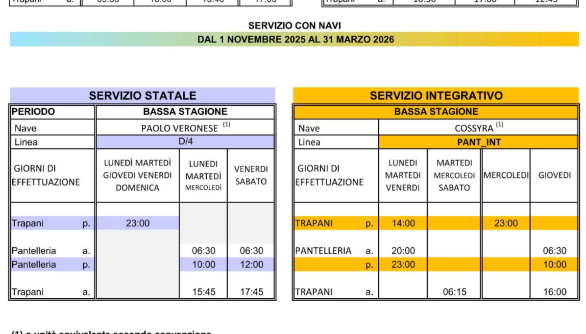 Il collegamento avverrà sempre con le navi Cossyra e Paolo Borsellino.