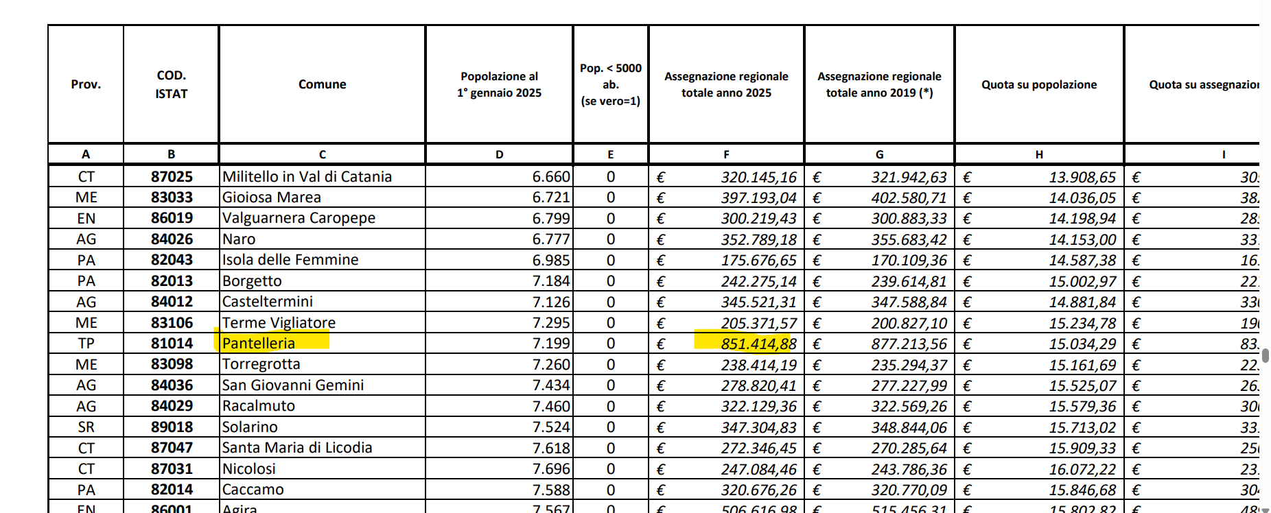 Autonomie locali, 115 milioni per i Comuni siciliani dal Fondo per investimenti 2026. Ecco quanto a Pantelleria