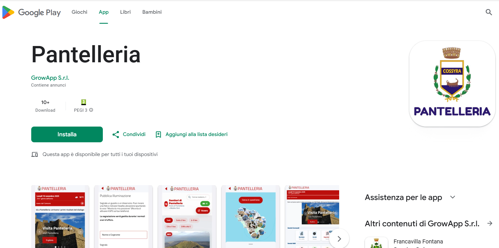Ecco il link per accedere e scaricare l’app: app – digital Comune di Pantelleria