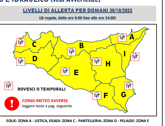 Dettagli dalla Protezione Civile Dipartimento Regione Siciliana – Allerta anche a Pantelleria