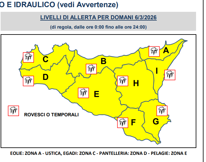 L’ente prevede l’allerta gialla in tutta l’isola, Pantelleria compresa, per la giornata di domani, venerdì 6 marzo.