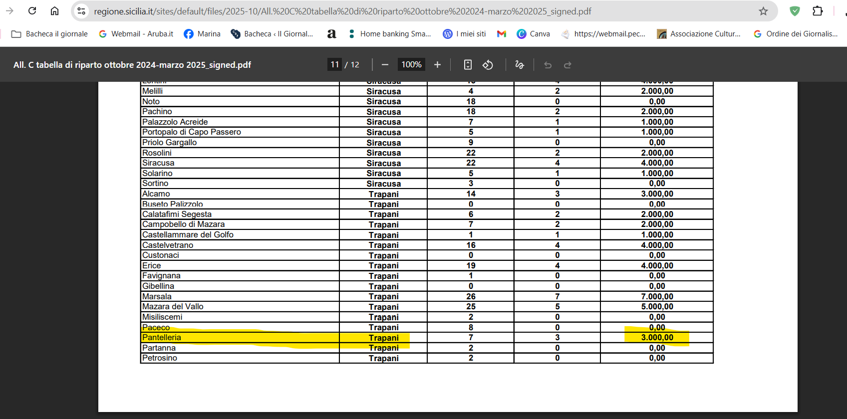 Riparto somme per Pantelleria