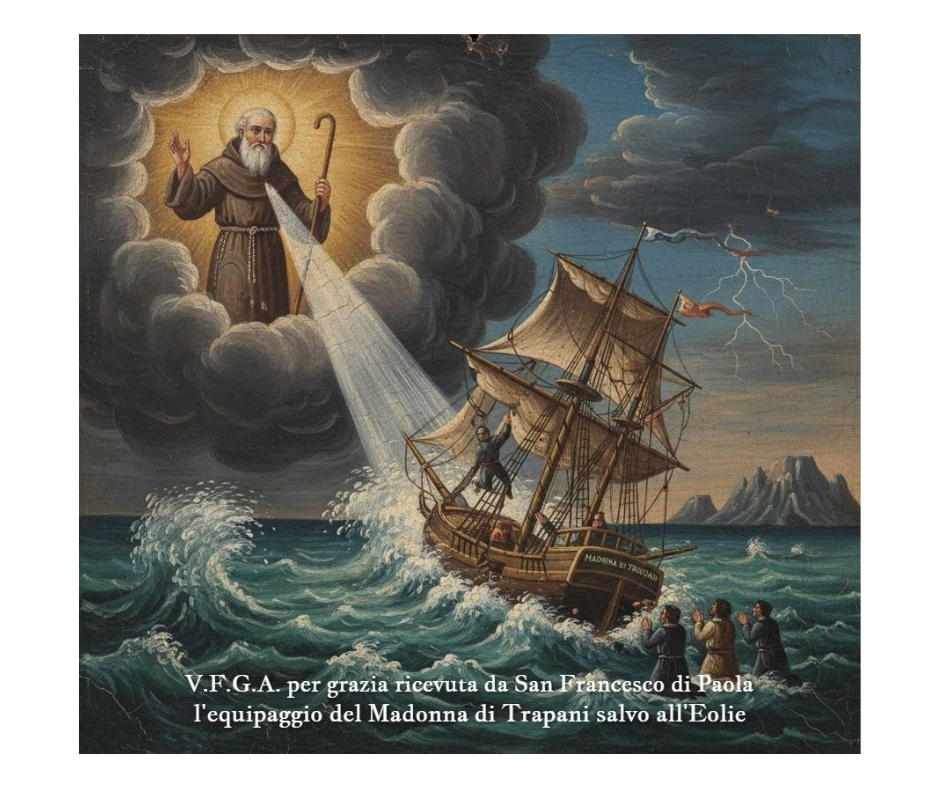 Quella tavoletta recava scritto: V.F.G.A., per grazia ricevuta da San Francesco di Paola l’equipaggio del Madonna di Trapani salvo all’Eolie.