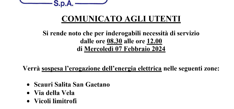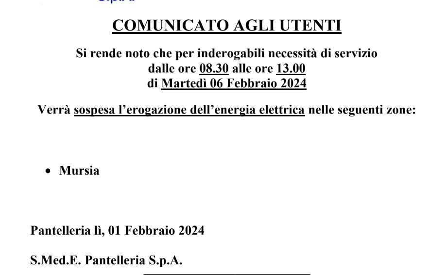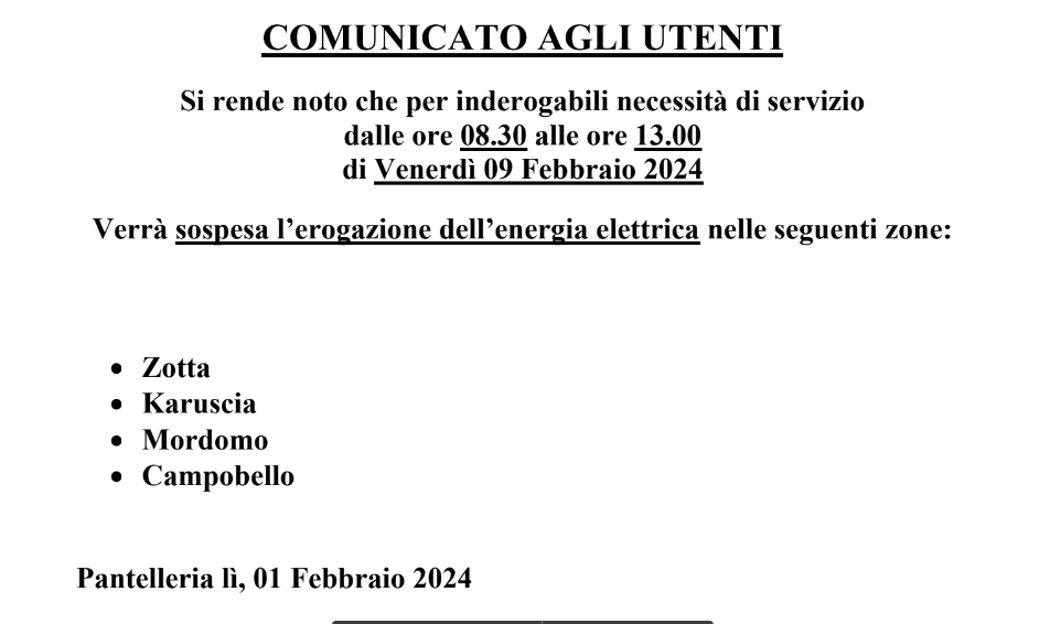 Pantelleria, 3 giorni senza energia elettrica: dal 6 all’8 febbraio. Vediamo dove