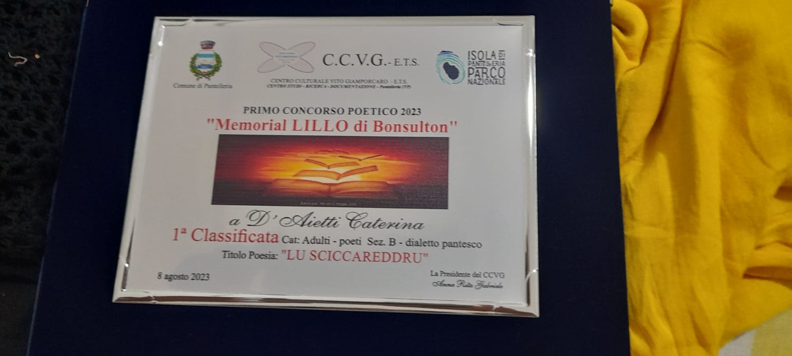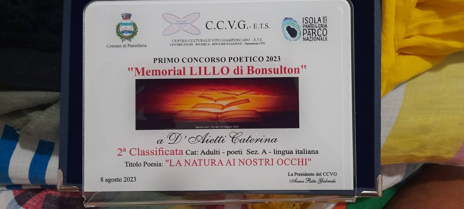 Pantelleria-Aprilia, Caterina D’Aietti si aggiudica 1° e 2° premio di poesia del Memorial Lillo di Bonsulton