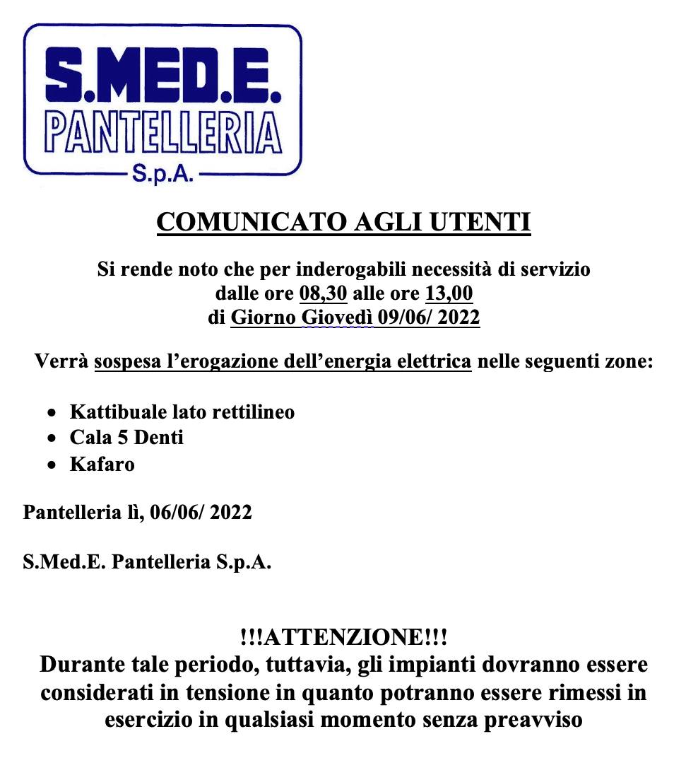 Pantelleria, da oggi interruzione energia elettrica al centro e diverse contrade