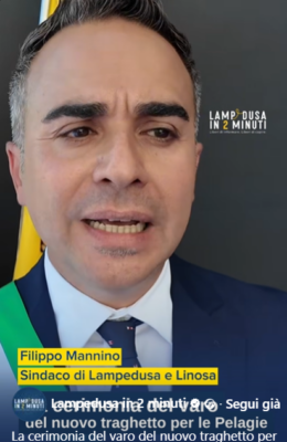 Di poi, sempre nel servizio, l’attenzione viene spostata sulla presenza dell’Assessore Regionale ai Trasporti, Alessandro Aricò, a cui, con domanda diretta e schietta il collega lampedusano chiede se anche Pantelleria usufruirà del servizio della nuova nave.