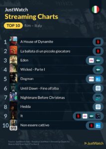 L’ultima classifica inerente a top film e serie TV più gettonate in Italia nell’ultima settimana: https://www.justwatch.com/it/streaming-charts