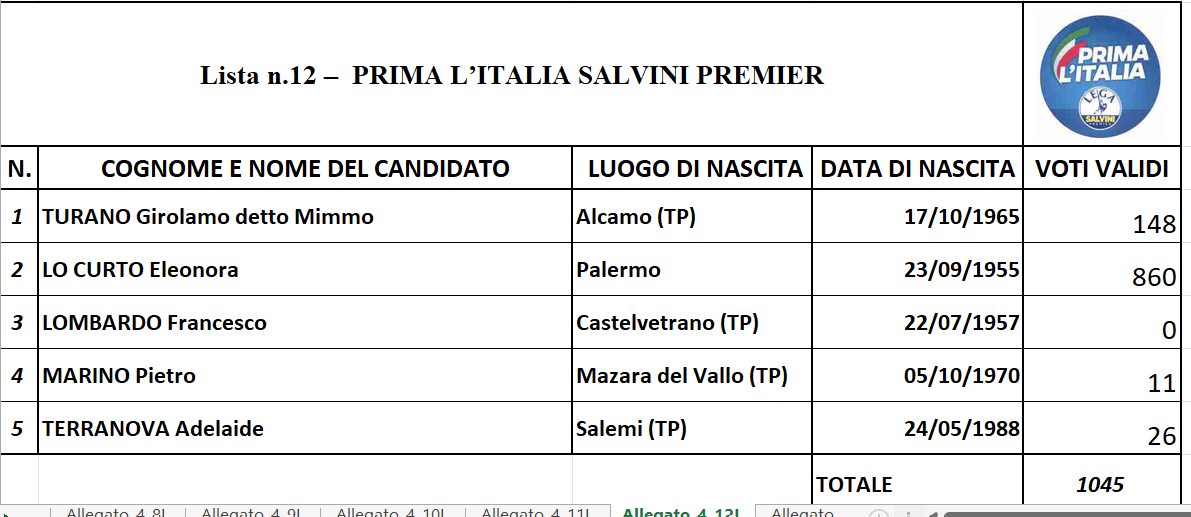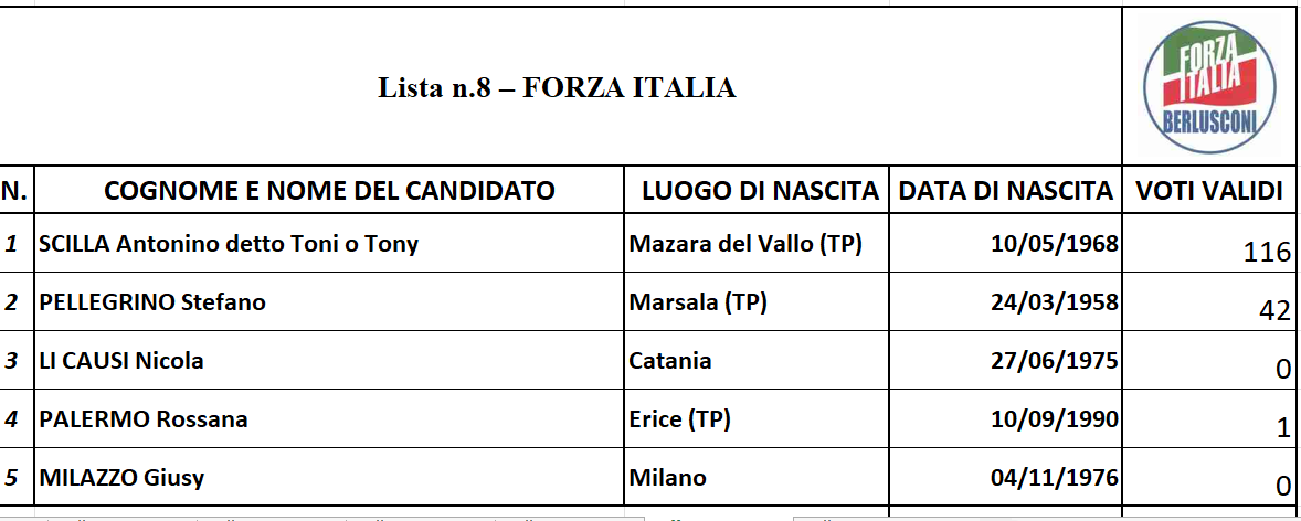 Renato Schifani sulla nostra isola ha conquistato 1154 preferenze. A livello regionale l’ex senatore ha raggiunto il 41,8%, con il quale è salito alla reggenza della Regione Siciliana.