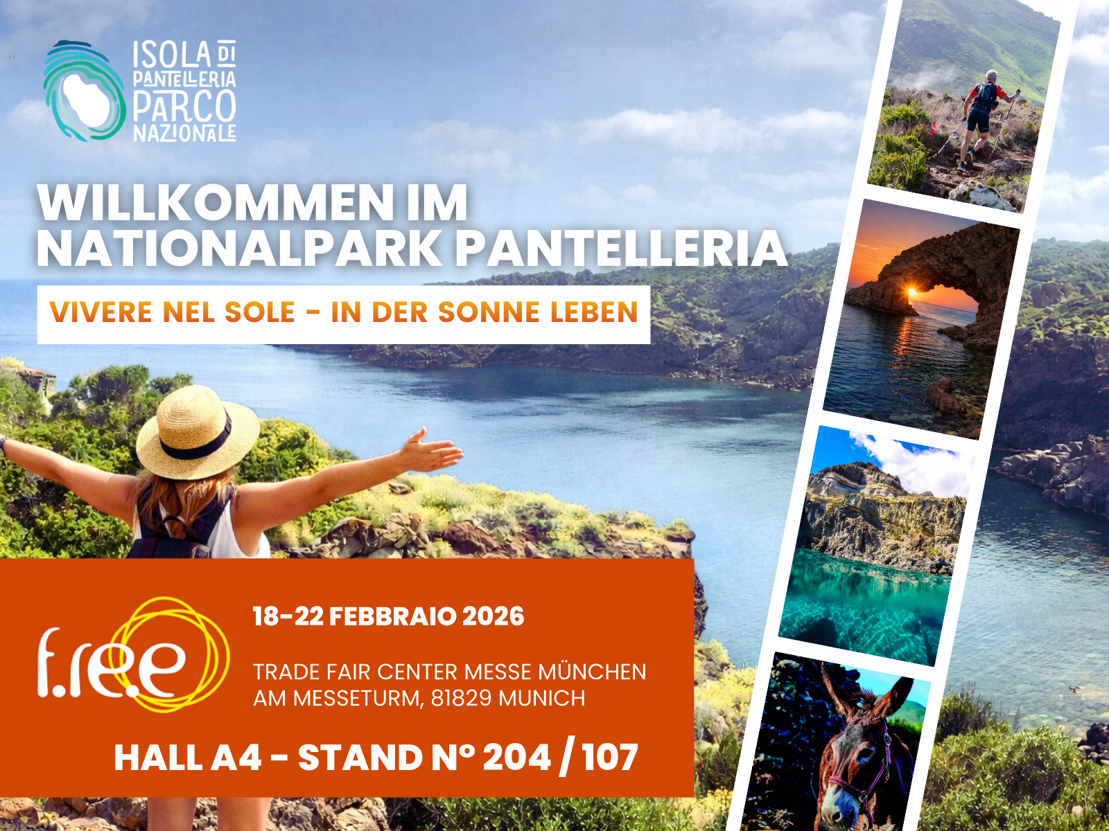 Il Parco Nazionale Isola di Pantelleria parteciperà con un proprio stand alla F.RE.E – Freizeit, Reise, Erholung, in programma dal 18 al 22 febbraio 2026 presso il centro fieristico Messe München. Lo stand del Parco, collocato nel Padiglione Hall A4 – Stand n° 204 / 107, rappresenterà il territorio nella sua interezza, portando in Germania le bellezze naturalistiche, i servizi per l’accoglienza e le eccellenze produttive dell’isola.