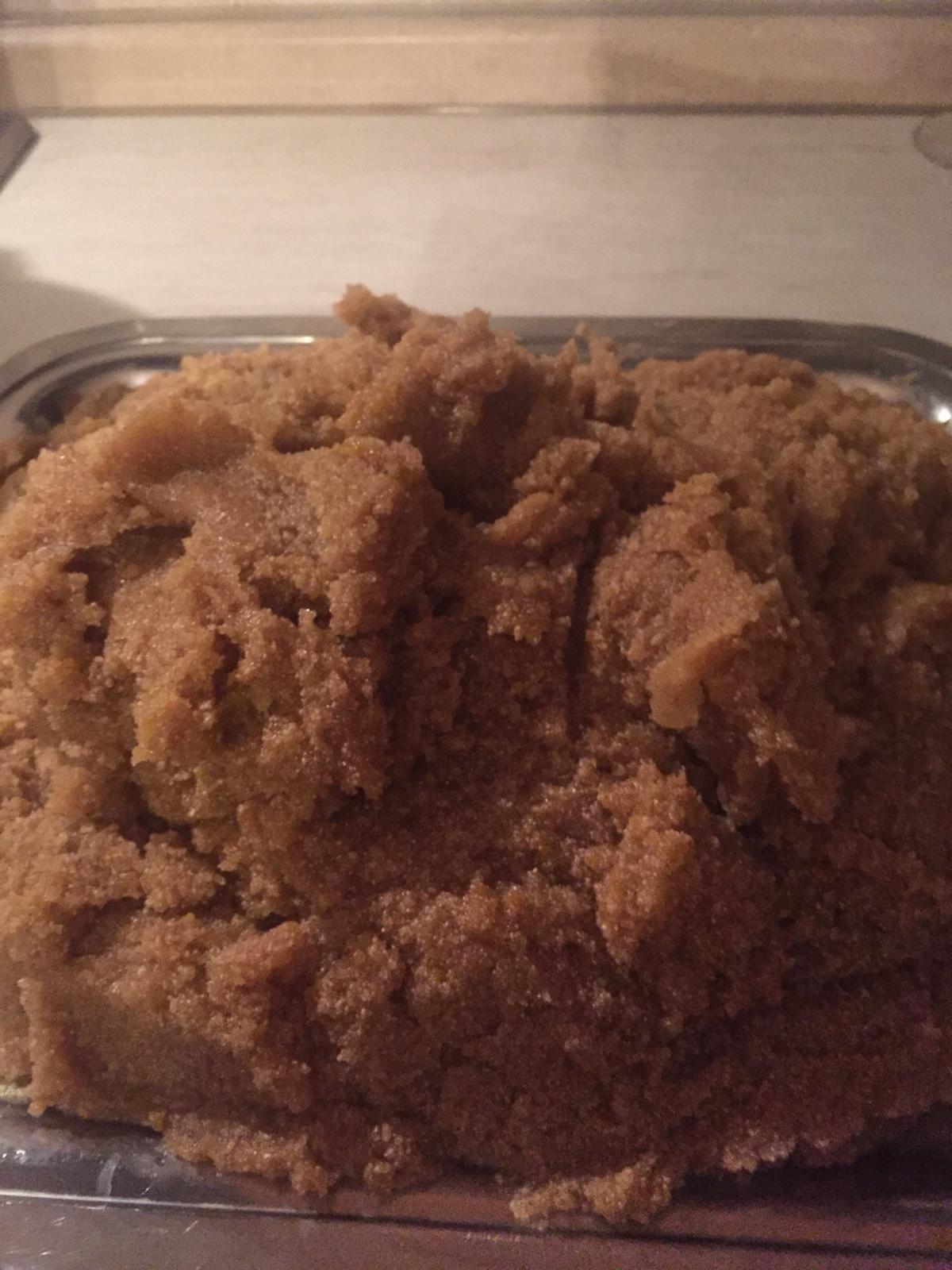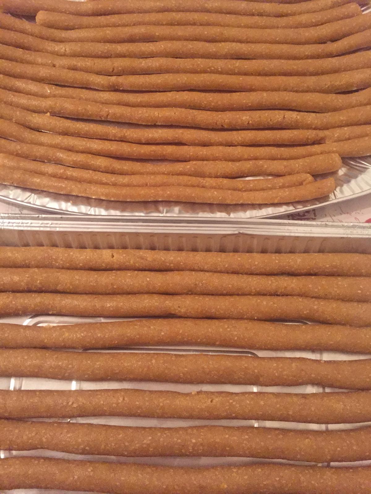1kg miele 650 gr semola 350 gr mandorle 250 gr zucchero Mezzo bicchiere di vino bianco Mezzo bicchiere di maraschino 1 bicchiere di acqua Aromi : cannella , buccia di mandarino , vaniglia , Sesamo 1 cucchiaio ? di strutto