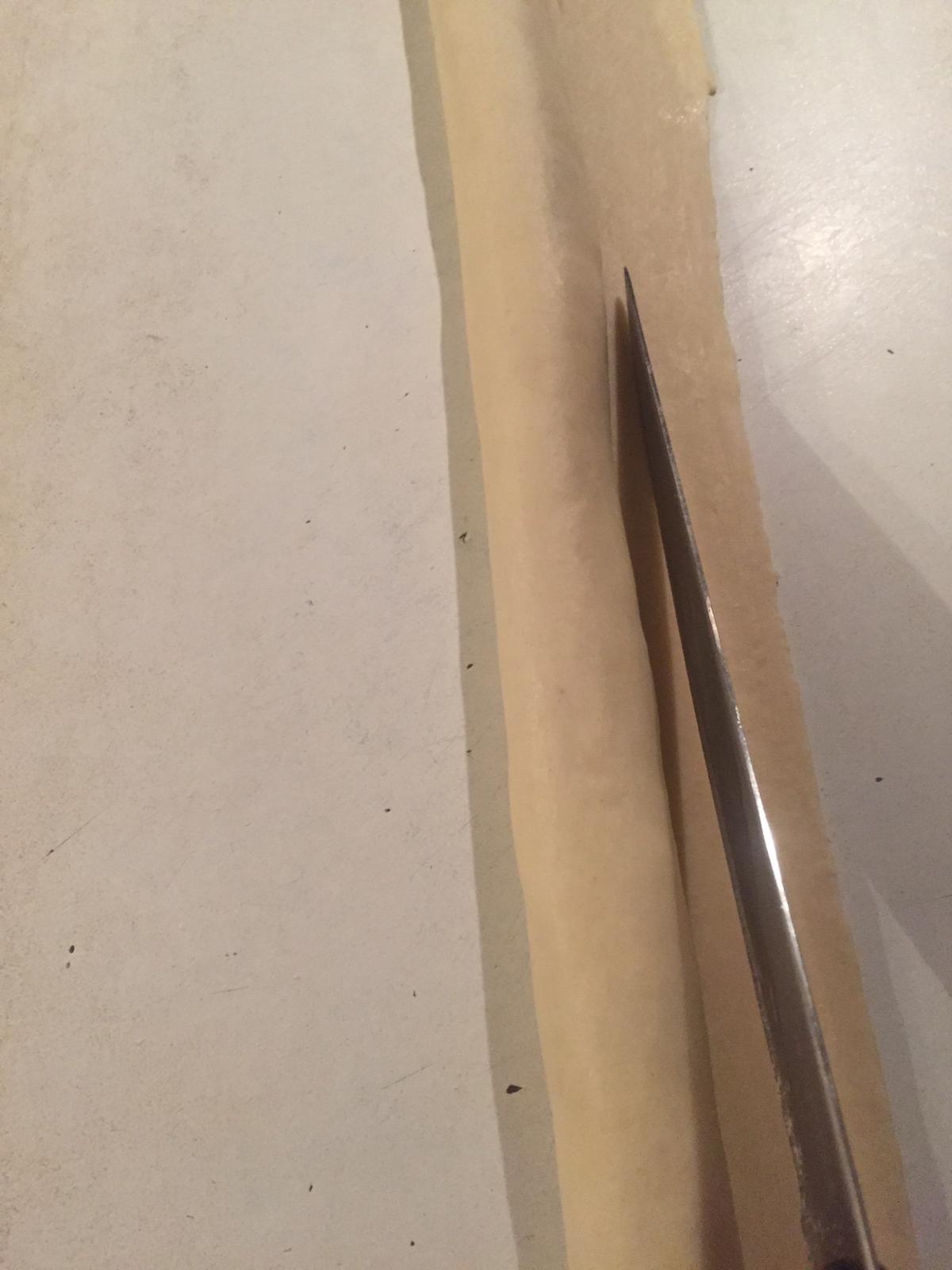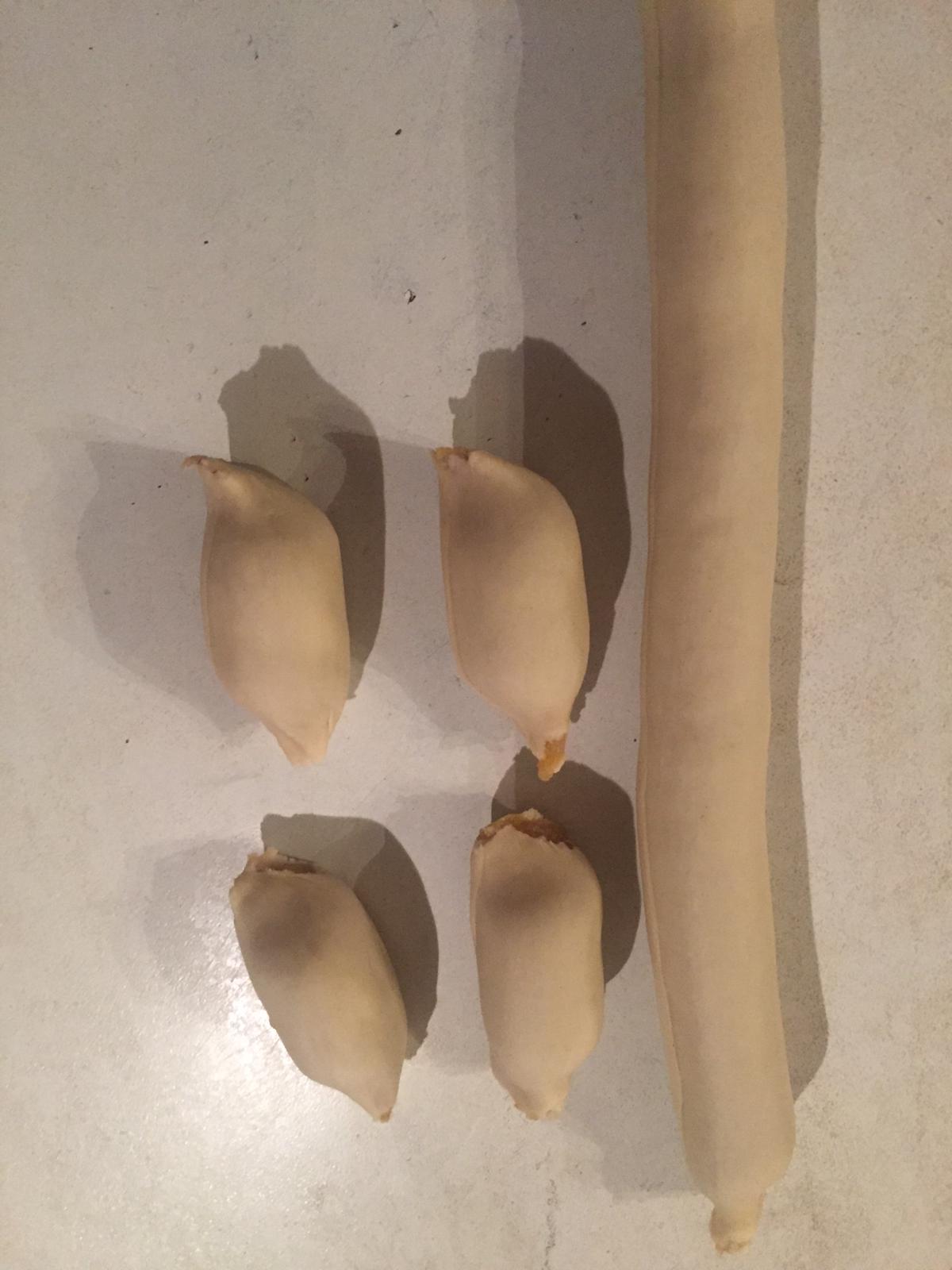 Versare in un vassoio e fare freddare poi fare i monghi, i segmenti di impasto di farcitura.