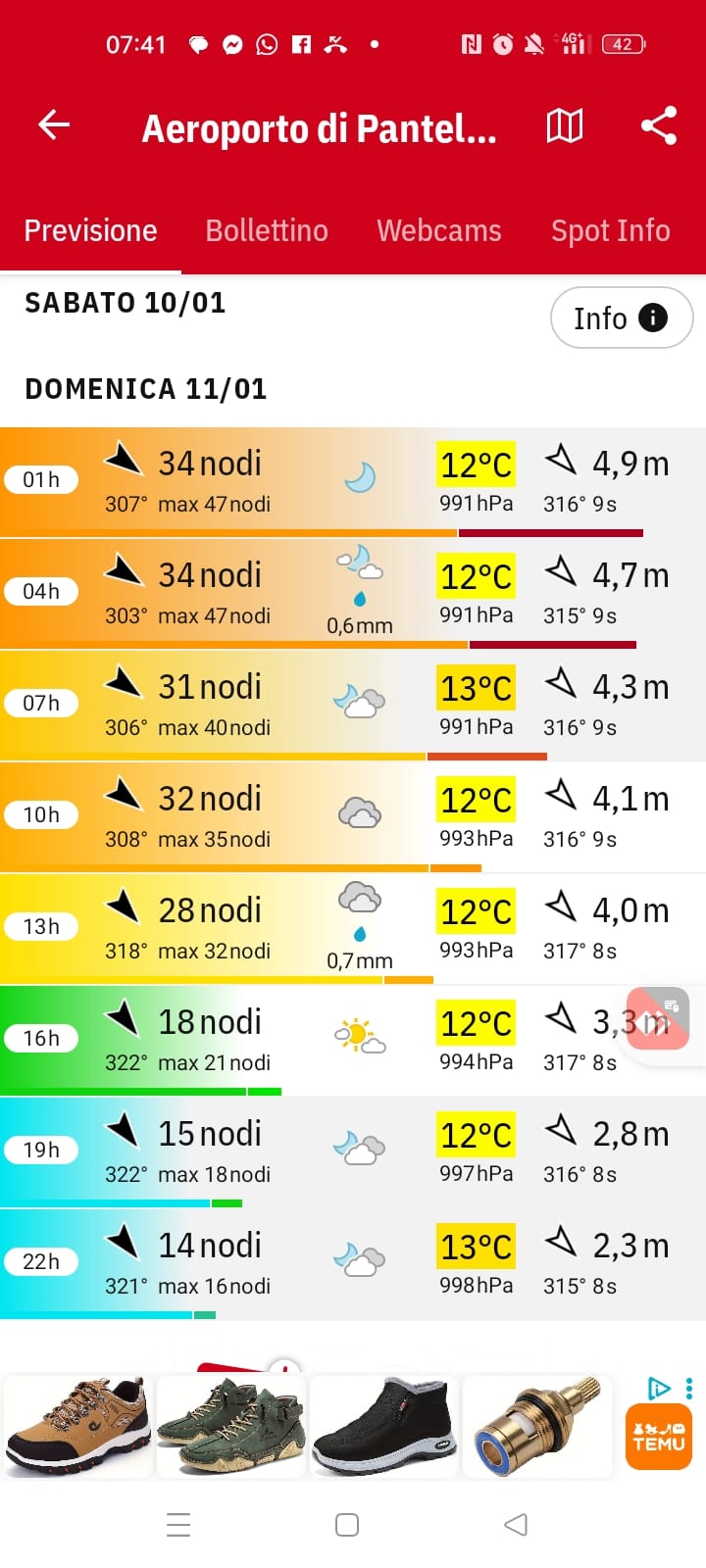 Ecco Windfinder cosa riporta per oggi sabato 10 e domani domenica 11 gennaio