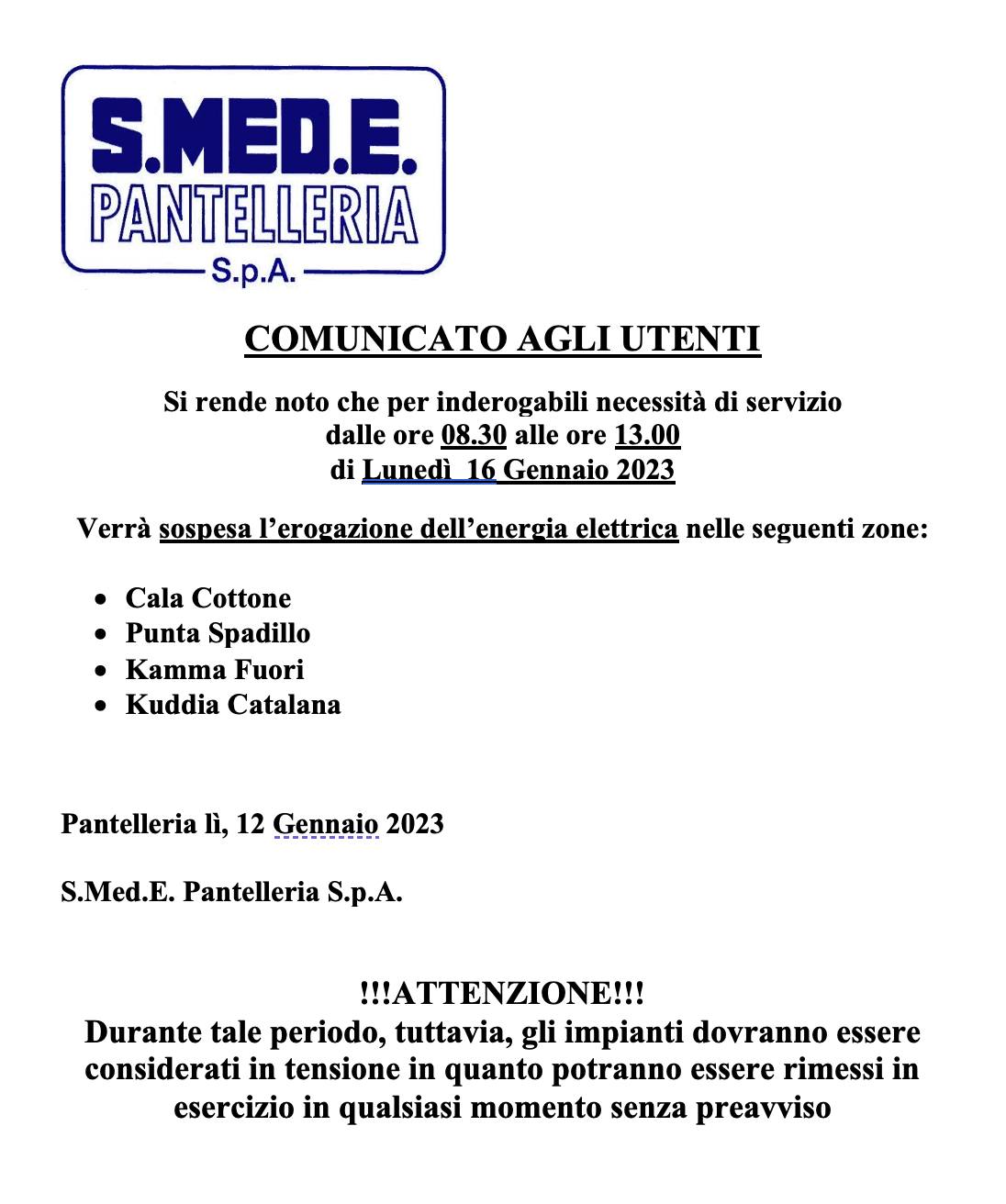 Pantelleria, nuova sospensione energia elettrica da Khamma a Scauri