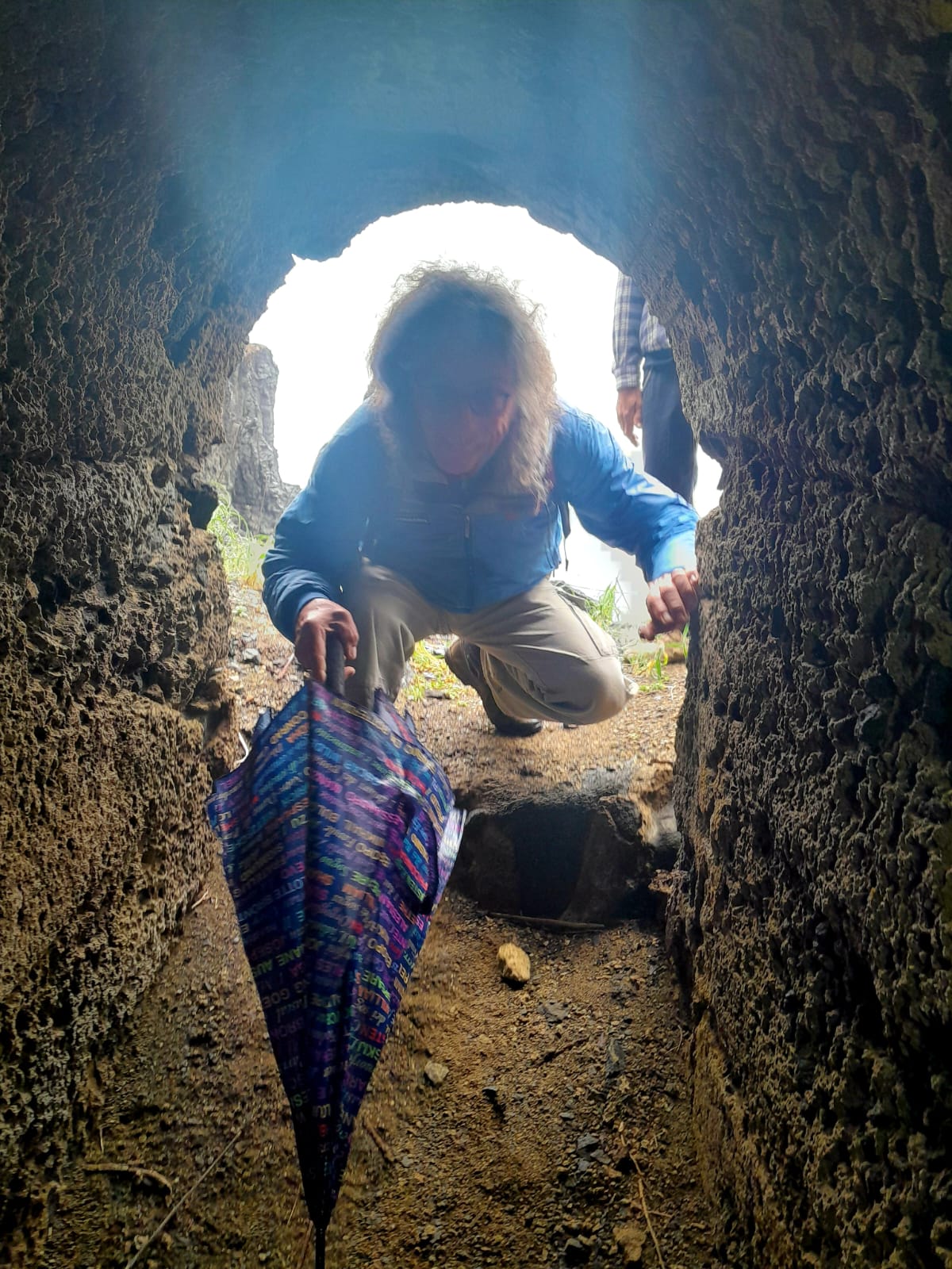 I visitatori, armati di torce e cellulari, come speleologi o minatori si sono insinuati nel tunnel che sbocca direttamente sul mare con un affaccio stupendo verso il Faro di Punta Spadillo.