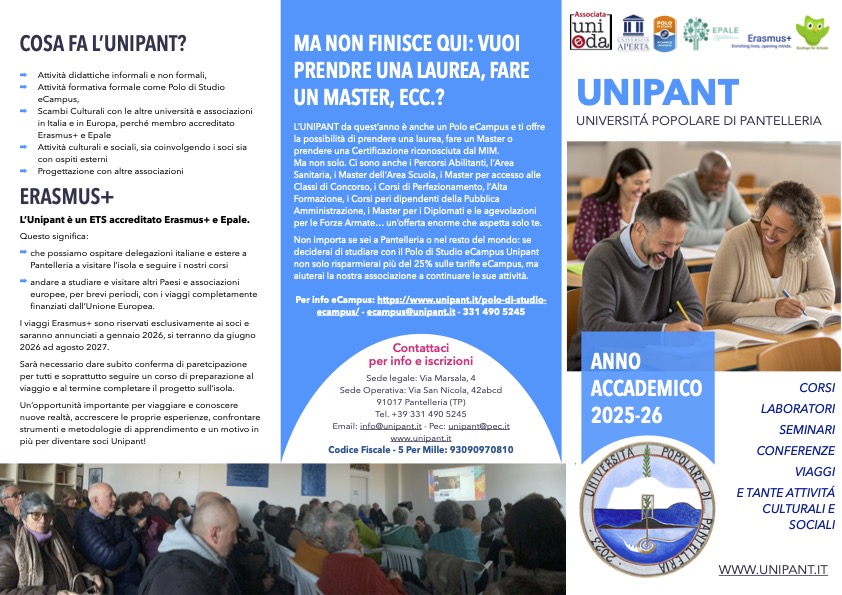 Pantelleria – Unipant, Nuovo Anno Accademico 2025-26: 40 attività didattiche in presenza e online. Aperte le pre-iscrizioni