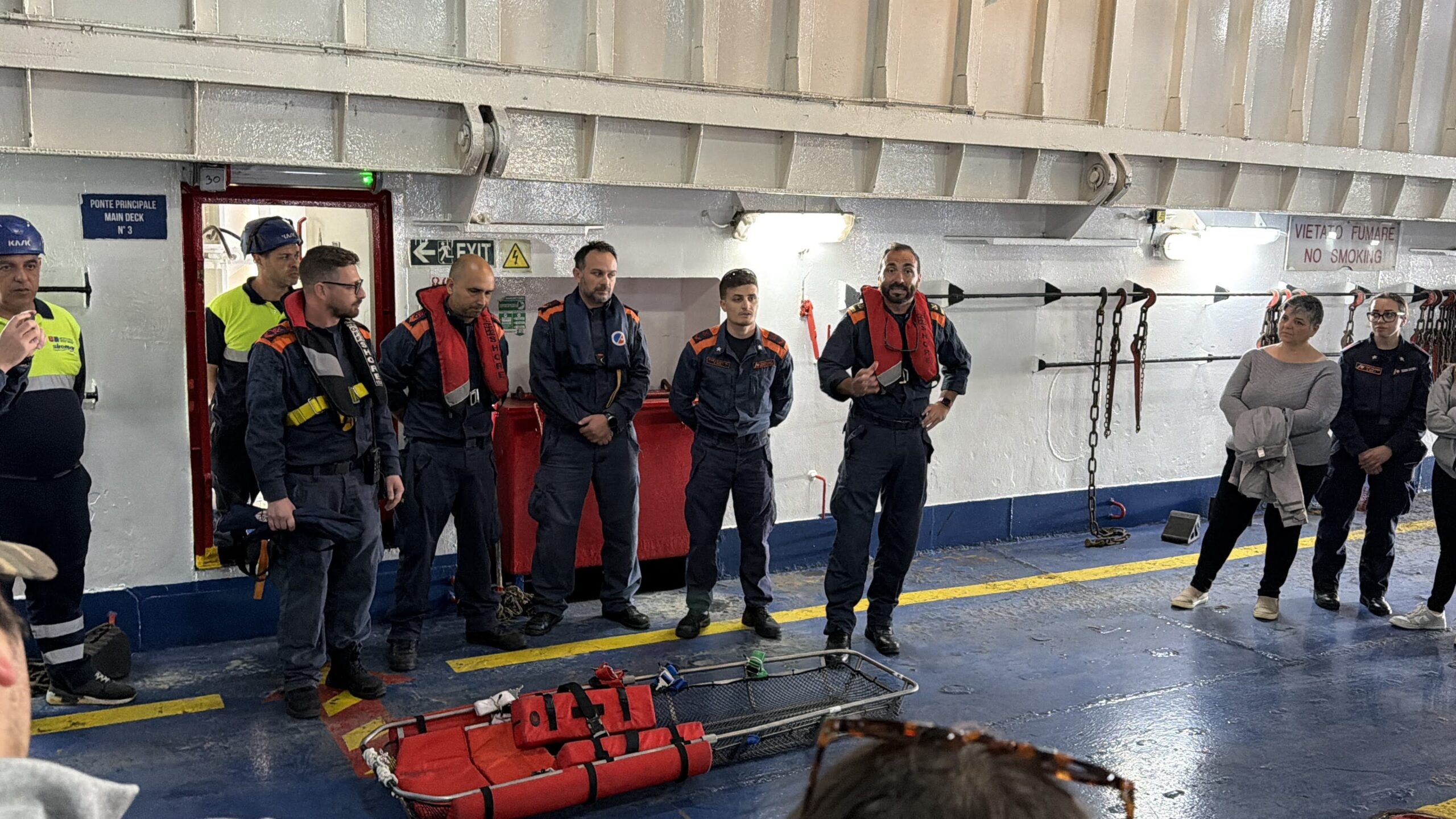 traghetto di linea (la M/N Paolo Veronese), salire a bordo di una motovedetta di soccorso (la