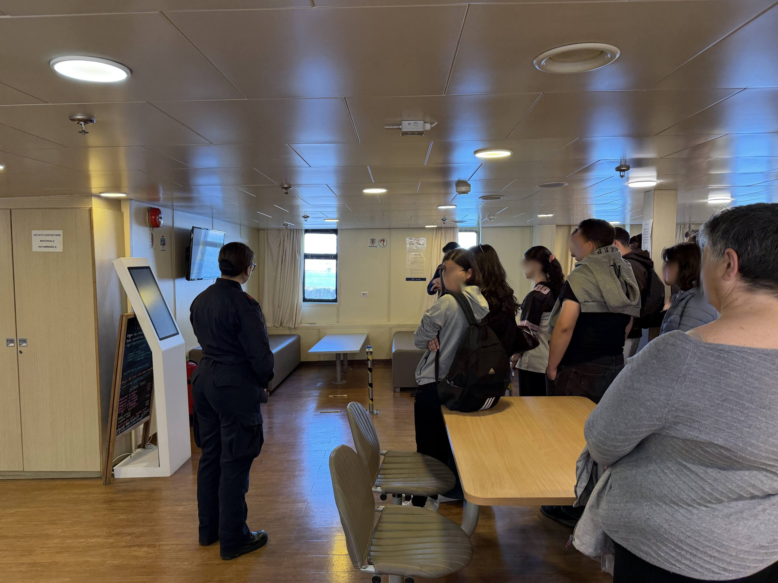 traghetto di linea (la M/N Paolo Veronese), salire a bordo di una motovedetta di soccorso (la