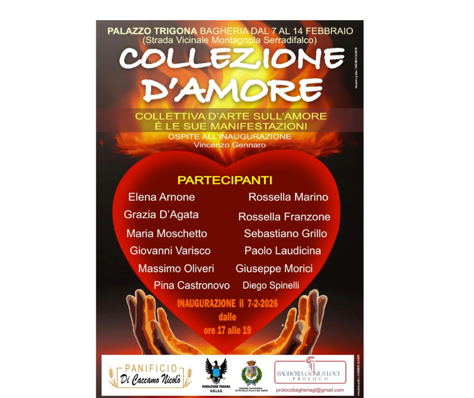 Per un San Valentino 2026 Palazzo Trigona di Bagheria ospita dal 7 al 14 febbraio la collettiva “Collezione d’Amore“.