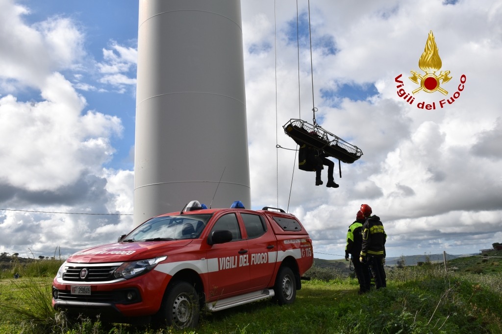 Ad Alcamo (TP) sono state simulate operazioni di soccorso e salvataggio sulle pale eoliche con l’impiego degli elisoccorritori dei Vigili del Fuoco e di tecniche di derivazione SAF (Splelo Alpino Fluviali).