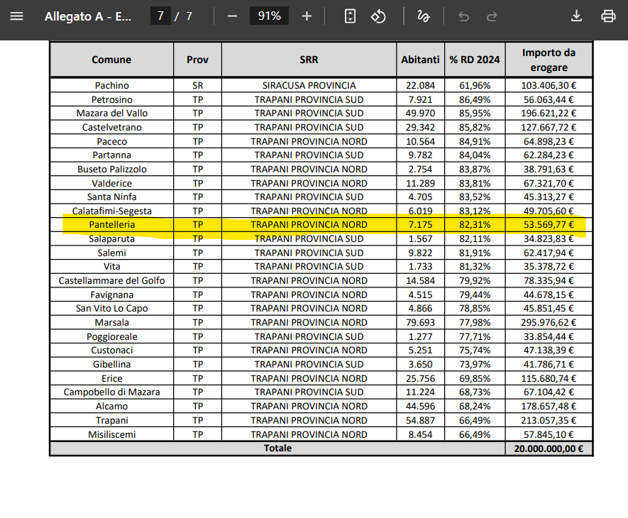 Pantelleria virtuosa per raccolta differenziata. Il report della regione Siciliana