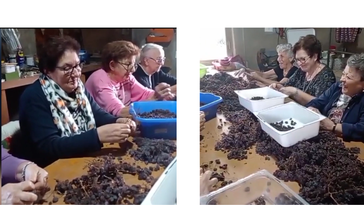 C’erano Rosa, Anna, Anita, Lina e tre Marie a tessere l’antica usanza dello sgrappolamento degli acini di zibibbo appassiti.
