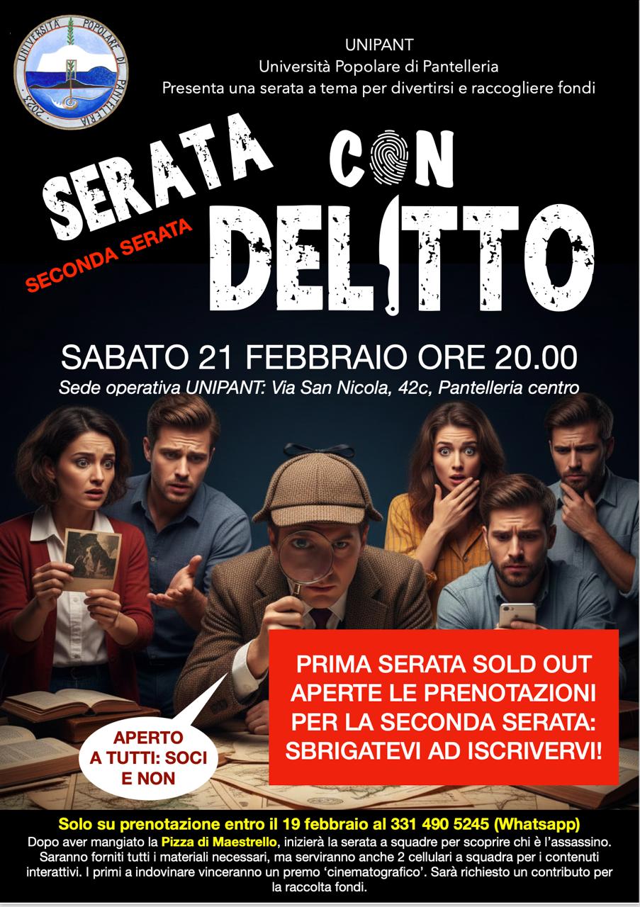 L’UNIPANT organizza una raccolta fondi davvero particolare: con una Serata con Delitto a Pantelleria aperta a tutti
