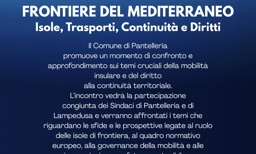 Con la partecipazione del Sindaco di Pantelleria Fabrizio D’Ancona e del Sindaco di Lampedusa Filippo Mannino Il Comune di Pantelleria annuncia l’organizzazione della conferenza “Frontiere del...