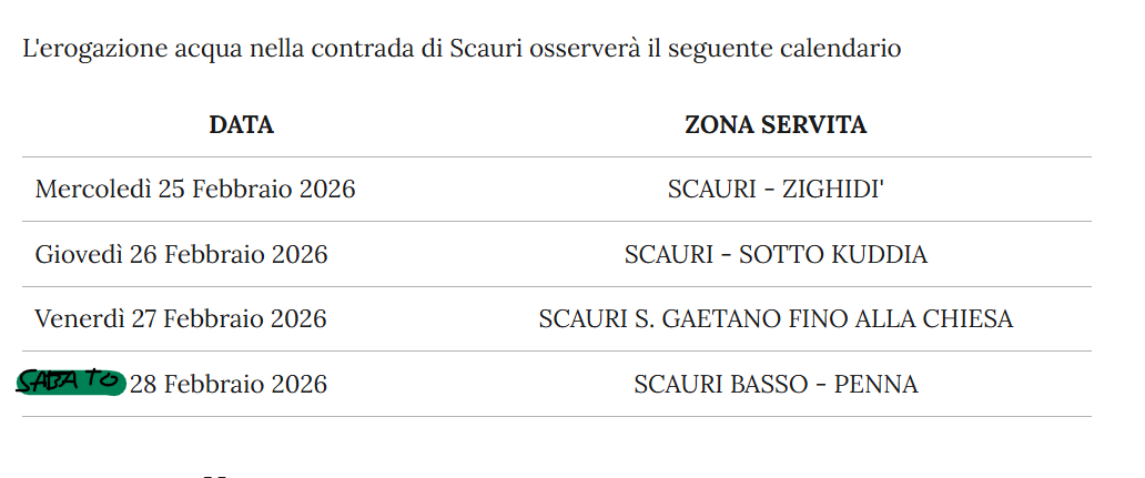Riparte il servizio di distribuzione dell’acqua nelle contrade. Per oggi parliamo di Scauri.