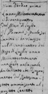 Estratto documento Nota Lato pagina in cui si dichiara battezzato il “trovatello “ con il nome Concetto
